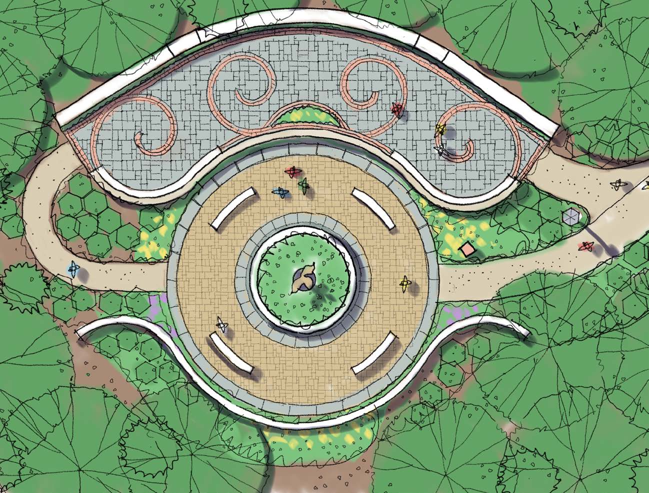 The raised circular garden is surrounded by two brick walls of remembrance. These walls house 10-by-2-inch bronze plaques for each person interred in the garden.